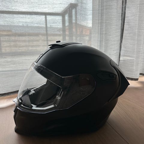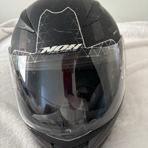 MT Eclipse NOX kypärä valkoinen mustilla kuvioilla. Täyskypärämalli kirkkaalla visiirillä ja etuosan ilmanottoaukolla. Kypärässä on pehmustettu sisusta ja leukahihna pikalukituksella. Soveltuu moottoripyörä- tai mopokäyttöön käyttäjän koon ja hyväksyntämerkintöjen mukaan. Kypärän koko L.