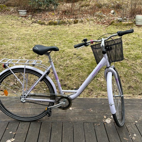 Valkoinen unisex-kaupunkipyörä 28" (700c) renkailla.