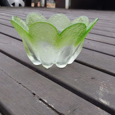 Korkeudet 15 cm, 20 cm ja 25 cm. Vihreä/kirkas, sisältä vaalea. Kannassa Muurla kaiverrettuna