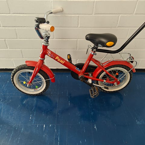 Tunturi Poni lastenpyörä 16". Pyörässä on 16 tuuman renkaat ja punainen runko. Varusteluun kuuluu takatavarateline, lokasuojat, seisontatuki, ketjusuoja sekä heijastimet ja soittokello. Sopii lapselle, joka käyttää 16 tuuman kokoista lastenpyörää.