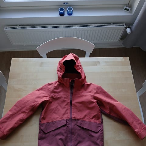 Vaaleansininen/laventeli värinen kevättakki, koko 134/140cm. Yhden kauden ollut käytössä. Hyväkuntoinen, hihansuissa toki tullut pientä kulumaa.