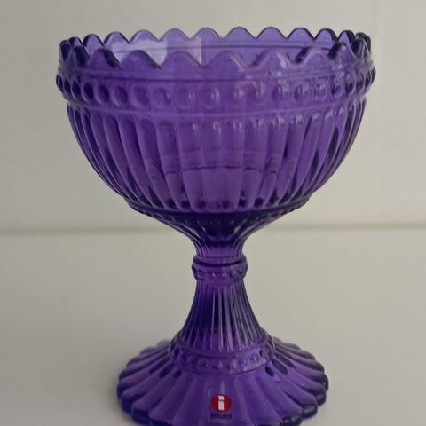 Myydään tarpeettomana Iittalan ja Marimekon klassikko, iso Mariskooli-malja (155 mm). Väri on upea ja syvä mustikansininen, joka taittaa kauniisti lilaan valon osuessa siihen