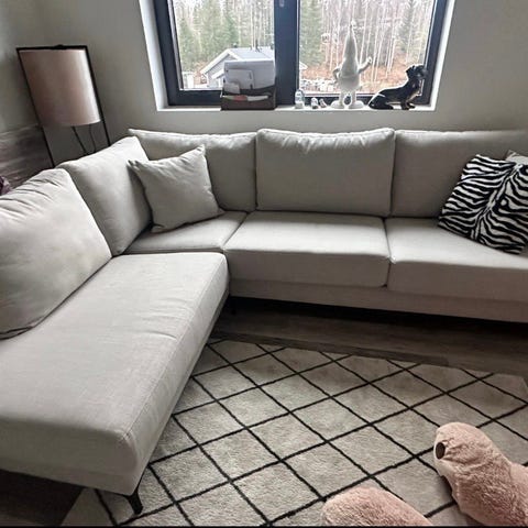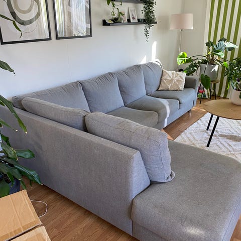 Masku Harmaa iso sohva hyvässä kunnossa malli estelle