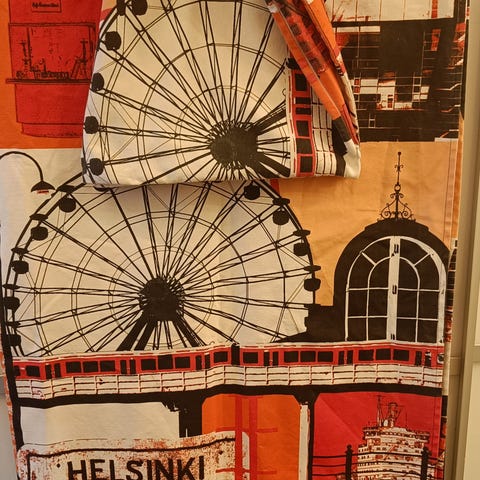 Laadukas hyvässä kunnossa oleva Vallilan Tampere aiheinen verho.