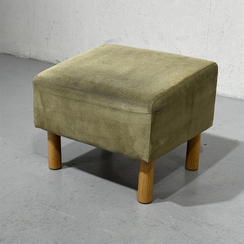 Punainen tukeva penkki tai rahi, jossa on puinen jalusta. Valmistaja Pedro on merkitty etikettiin.