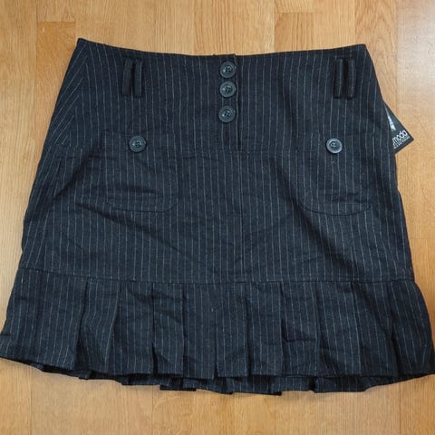 Skottiruudullinen minihame, jossa on takana vetoketju, edessä laskos ja taskut saumoissa. Materiaali: 50% villaa, 50% polyesteriä. Vuorihame 100% polyesteriä.