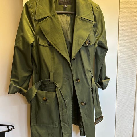 Vintage Unisex Oversized Trench Coat - Olive/Sage Green - Size S
