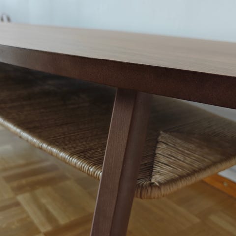 Pöytä on juuri putsattu ja on oikein hyvässä kunnossa. Muutama pienin pieni jälki, jotka näkyvät vain läheltä katsottuna (katso kuvat).