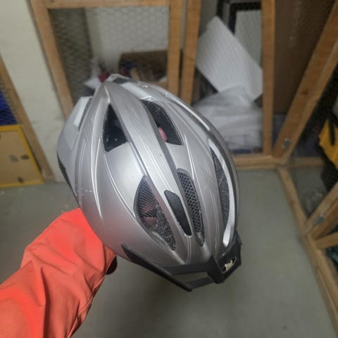 Myydään valkoinen pyöräilykypärä, takaa säädettävä koko.
