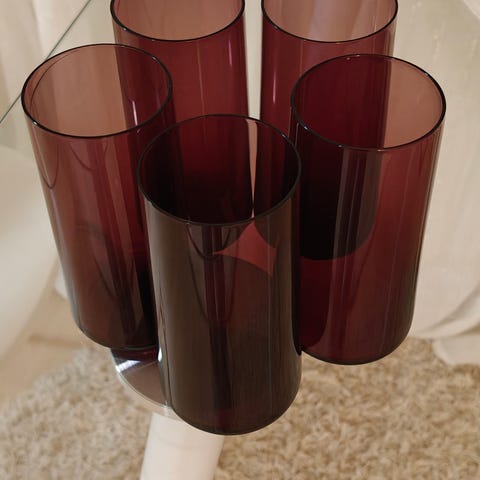 Iittala juomalasit vihreää lasia. Kuvissa kuusi jalallista, pystyribbauksella koristeltua lasia.
