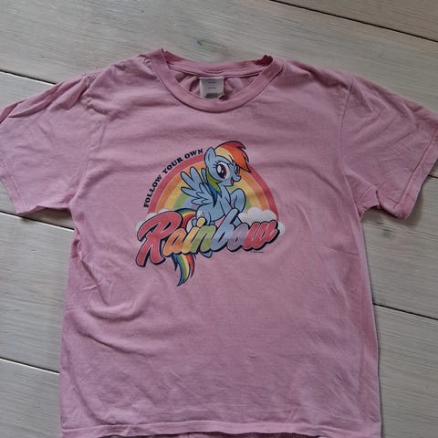 My Little Pony rock star laadukas puuvillainen t-paita. Koko on 128 cm, mutta malli on rento ja menee myös helposti 134 senttiselle. Laput on poistettu, mutta valmistaja ja tiedot on samat kuin toisessa myymässäni My Little Pony -paidassa (kts. kuvat). Nouto tai postitus.
