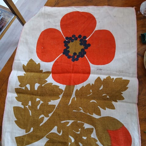 Valkoiset rokokoo 130x130 cm, Tammenlehvä 2 kpl 180x150 cm ja 129x122 cm, Timber 93x90 cm, pellavan värinen käyttämätön humalaköynnös 130x133 cm, vaaleanpunainen Rokokoo 90x82 cm. Hinta yhteensä 25 e + mahd postikulut 11,90 e
