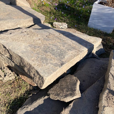 Harmaa luonnonväri kivilaatta ulko- tai piharakentamiseen. Sopii esimerkiksi pihapoluille, terassin tai muiden ulkoalueiden pinnoittamiseen. Kivilaatan koko vaihtelee, kuvan mukaisia ja hieman isompia 22kpl + puolet kuvan laatasta olevia pienempiä kiviä 17kpl.