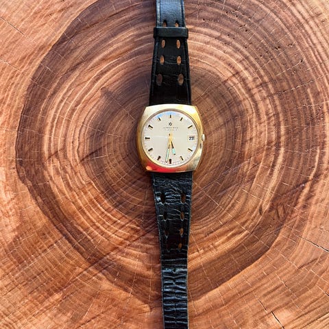Junghansin herrakello.Koneisto: käsivetoinen. Kal. J87.Kellotaulu: hopeanvärinen.Kellolas.: akryylinen.Kotelo: kullanvärinen.Halkaisija noin 34 mm (mitattuna ilman koron).Uusi nahkaranneke.Kokonaispituus noin 22 cm.Erittäin kaunis ja harvinainen kello.Kello testattiin 24 tunnin ajan. Siinä havaittiin poikkeama -4 minuuttia 24 tunnin ajanjaksolla, eikä muita ongelmia ilmennyt.Tilan näet yksityiskohtaisista valokuvista..Kuvat ovat osa kuvausta.