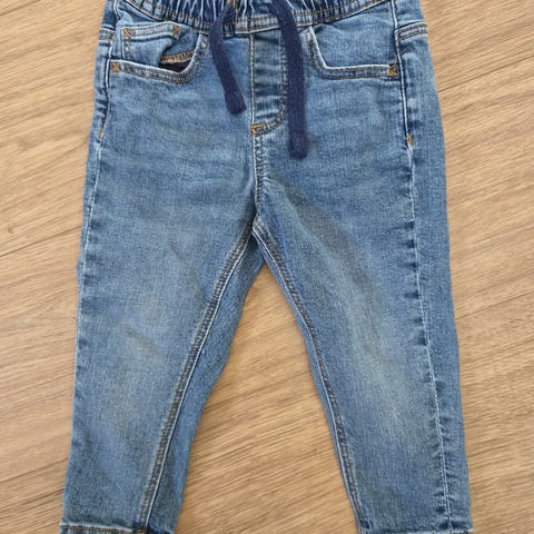 Myynnissä H&M:n farkkujoggersit/farkut koossa 92. Pesty hajusteettomasti. Tekstiilipölyallerginen pienen koiran perhe.