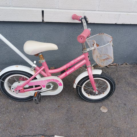 Pluto-merkkinen 12" polkupyörä irrotettavilla apupyörillä ja aputangolla. Nouto Huhtalasta.