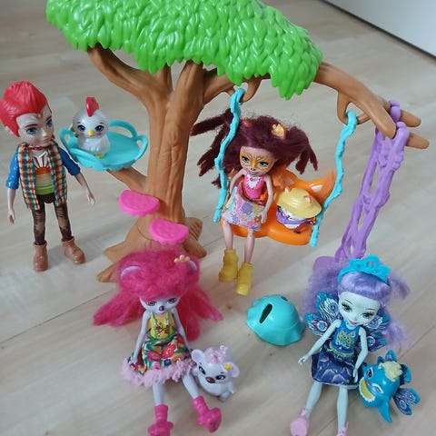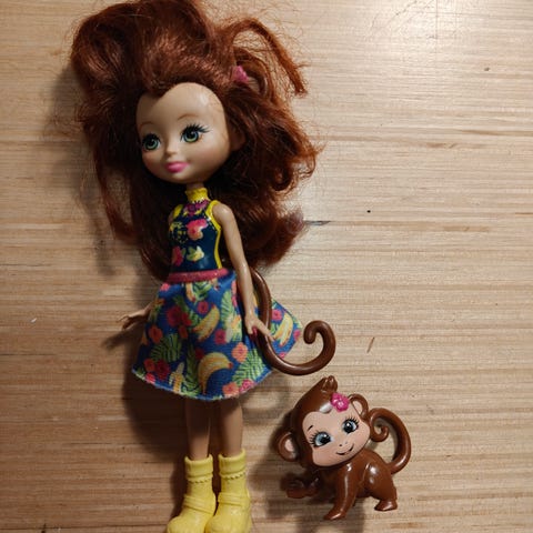 Siisti nukke ja sille kuuluvan lemmikki.