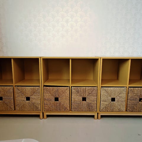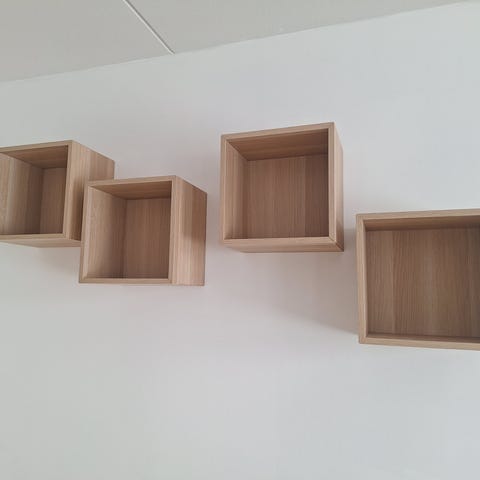 Neljä Eket hyllyä seinäkiskoineen. Väri tumman harmaa.