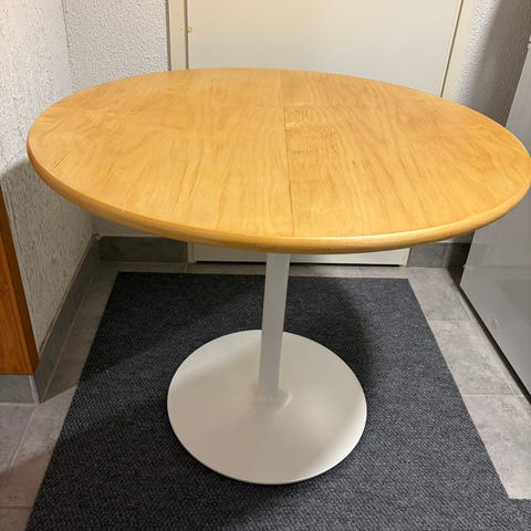 Hyväkuntoinen, raskastekoinen eli kestävä koivoinen pyöreä kaksitasoinen sohvapöytä tai "tupakkapöytä". Pöydän painosta huomaa, ettei todellakaan ole mitään kevytpuuta tai lastulevyä.