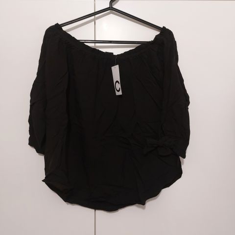 Musta paita vetoketjulla, alareunan sauma takaa purkautunut, pinnassa haitua, tahraton. Venyvää materiaalia.