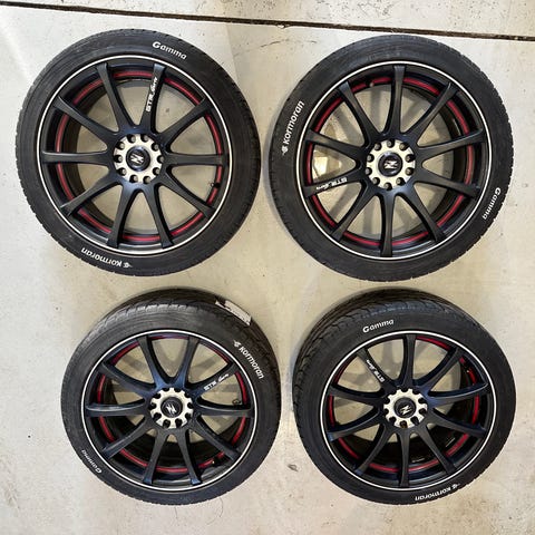 Renkaissa pintaa vielä n.6-7mm. Vanteet ei mitkään kaunokaiset mutta pyörii ja kaukaa ihan nätit. Kuvat kaikista vanteista. 290€/tarjous