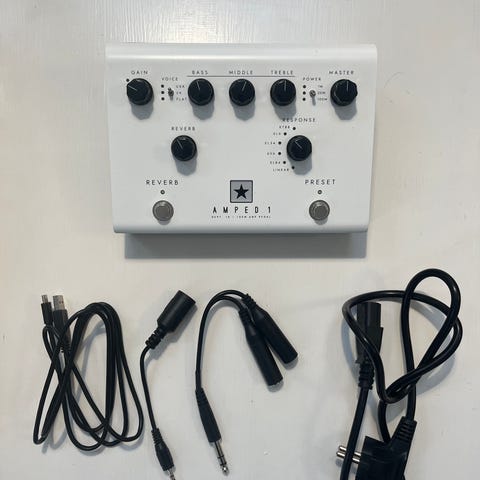 Blackstar ID Core stereo 40 -kitaravahvistin ja FS-11 pedaali. Ollut vähäisellä käytöllä vuosia sitten, minkä jälkeen seissyt pahvilaatikossa käyttämättömänä.