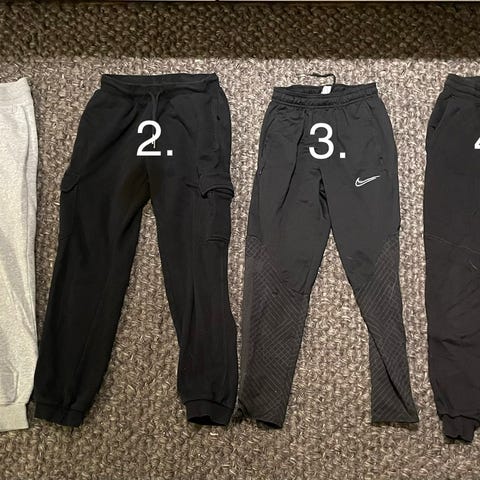 Koko 34, ehjät ja tahrattomat. 67 % polyesteriä, 33 % puuvillaa. 60 °C.