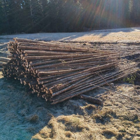 Mäntyrankaa. Pituus 3.5-5m. Hitaasti kasvanutta. Lyhyet 1e/kpl ja pitkät 2e/kpl. Vain nouto.