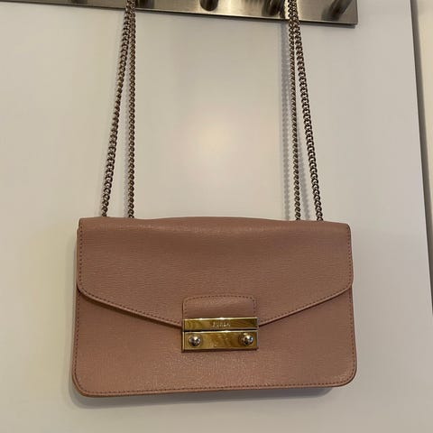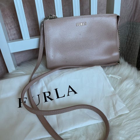 Myydään aivan ihana, uudenveroinen nahkainen Furlan crossbody laukku. Väri hentoinen roosa/nude. Kultaiset yksityiskohdat vetoketjussa, logossa ja hihnan metalliosassa.