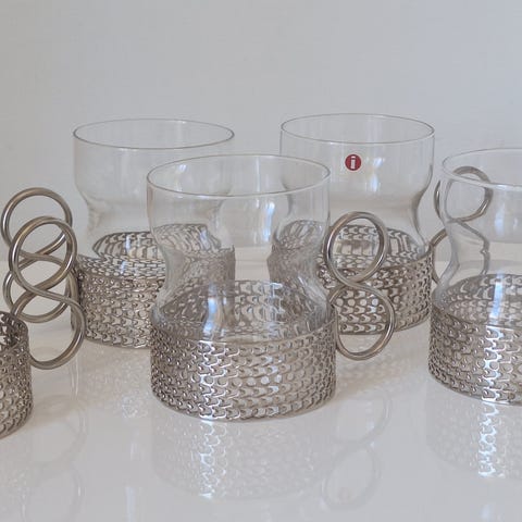 4kpl Iittalan tsaikka-laseja. Yhdestä metalliosa irti, sen saa kuitenkin korjattua.