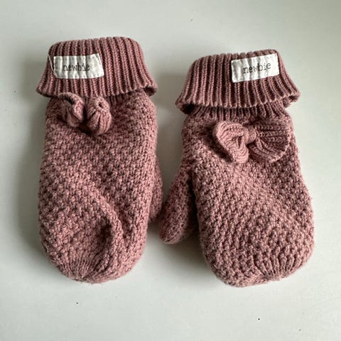 Moitteettomat puuvillaiset Newbie-pipot tupsulla. Hennon vaaleanpunainen ja vaalean beige. Yksi lakki 5 e. Kokomerkintä 2-10v.