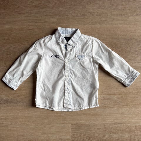 Newbie poikien paita, koko 110. Valkoinen puuvillapaita, jossa pieniä tummia valaskuvioita. Lyhythihainen malli, edessä nappikiinnitys ja rintatasku. Materiaali puuvillaa, sopii arki- ja juhlakäyttöön pojille noin koossa 110.