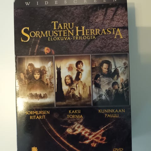 Kuvien Taru Sormusten Herrasta trilogia kaupan. Kaikki kolme elokuvaa extended versioina. Näistä kolmesta Kuninkaan paluu lahjapaketissa, josta itse elokuva on otettu katseltavaksi ja loput kamppeet säilytetty paketissa uudesta asti.