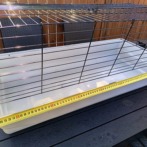 Pieneläinhäkki, jossa metallinen vaaleasävyinen verkkorunko ja musta muovipohja. Häkissä on avattava yläosa ja etuluukku, jotka helpottavat eläimen käsittelyä ja häkin siivousta. Muovipohja pitää kuivikkeet sisällä ja on irrotettavissa puhdistusta varten. Soveltuu esimerkiksi marsuille tai pienemmille eläimille. Ulkokuvista huolimatta häkki on tarkoitettu ensisijaisesti sisäkäyttöön.