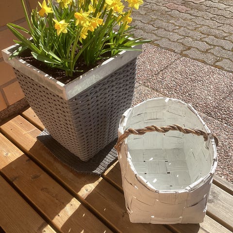 Kori on neliönmuotoinen ja siinä on kantamista helpottavat kahvat reunoissa. Sopii esimerkiksi säilytykseen tai istutusten suojaruukuksi muovivuorin ansiosta.