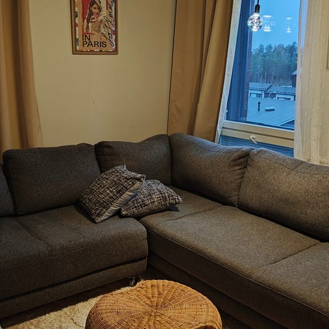 Ostimme Vepsäläisellä sohvan kesäasunnollemme, mutta se osoittautui harmittavasti hieman liian isoksi.