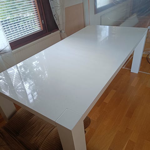 Käytetty ruokapöytä sekä 2 tuolia. Halkaisija 110 cm. Jalat on helppo kiinnittää. Pöydässä naarmuja ja käytön jälkeä. Vain nouto Niemenranta Tampere. Talossa on hissi ja auton saa alaoven eteen. Eläimetön koti.