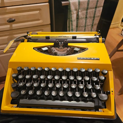 Williams MT-900 mekaaninen kirjoituskone kotelolla. Kannettava mekaaninen kirjoituskone, jossa täysikokoinen näppäimistö ja mustenauhakela. Mukana kovakantinen kuljetuskotelo kantokahvalla säilytystä ja siirtelyä varten. Sopii kirjoittamiseen, lomakkeiden täyttämiseen tai harrastekäyttöön, kun halutaan käyttää perinteistä mekaanista järjestelmää. Koneessa on nauha, mutta ei ole Käytetty 30 vuoteen. Ei ole varanauhoja. Tekstin korjaus tapahtui pelikan-levyillä ( kuvassa).
