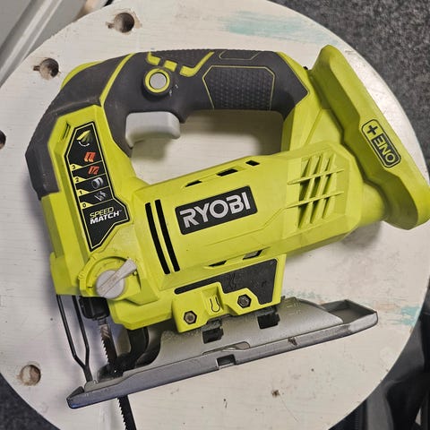 Myydään Ryobi RWSL 1801 akkupyörösaha laserilla , vähänkäytetty