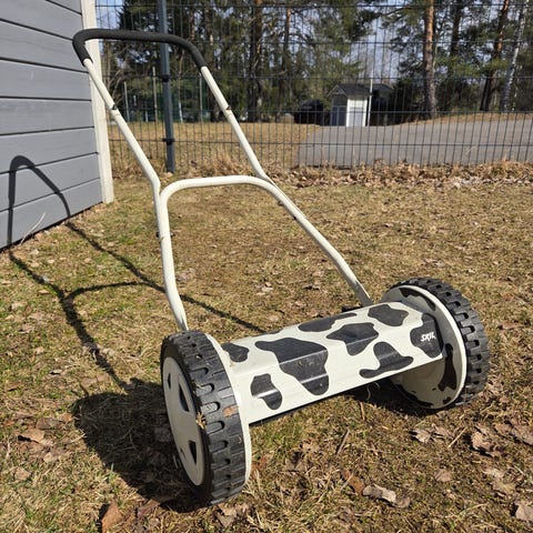 Hyvä ehjä siisti työnnettävä ruohonleikkuri myydään tarpeettomana.
