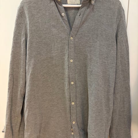 Zara Essentials Perfect Polo Shirt miesten pikeepaita. Harmaa paita, jossa kaulus ja nappilista edessä. Valmistettu puuvillasta. Koko L. Sopii arkikäyttöön ja rennon siistiin pukeutumiseen.