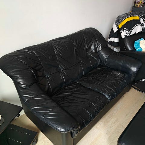 Kulunut nahkasohva.