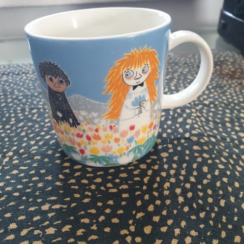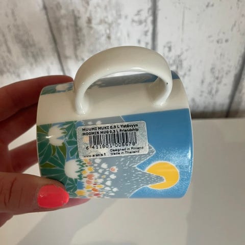 Myynnissä Arabian muumimuki Ystävyys. Muki on uusi. Tarra on paikoillaan.