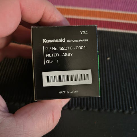 Kawasaki 16097-0008 öljynsuodatin. Alkuperäinen Kawasaki Genuine Parts -varaosa, pakkauksessa merkittynä FILTER-ASSY, P/No. 16097-0008. Sopii Kawasaki-moottoreihin, joissa käytetään tätä varaosanumeroa. Pakkauksessa yksi suodatin.