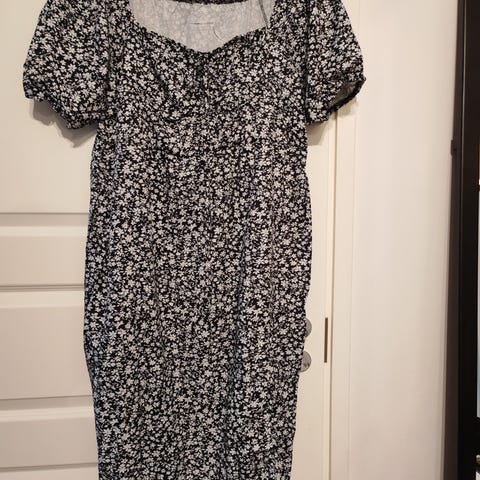 Myydään uusi musta kesämekko, kaunis kultalankainen koriste edessä. Kai-kai 61cm, hartia-helma 111,5cm. Polyesteri ja spandex. Menee pieneen kasaan esim. Matkalaukkuun, ei rypisty. Nouto Keravalta tai toridiili