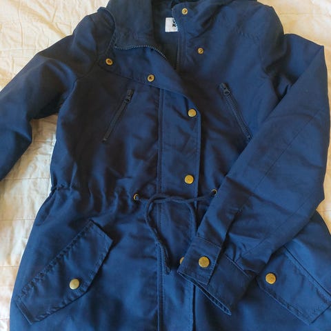 Cubus naisten ulkotakki kokoa XS. Väri tummansininen. Päällikangas 100 % nailonia, vuori 100 % polyesteriä. Takissa on pidempi malli, edessä vetoketju ja painonapit sekä vetoketjulliset taskut. Hupullinen malli, jossa kevyesti muotoiltu vyötärö. Sopii arjen ulkoiluun ja kaupunkikäyttöön.