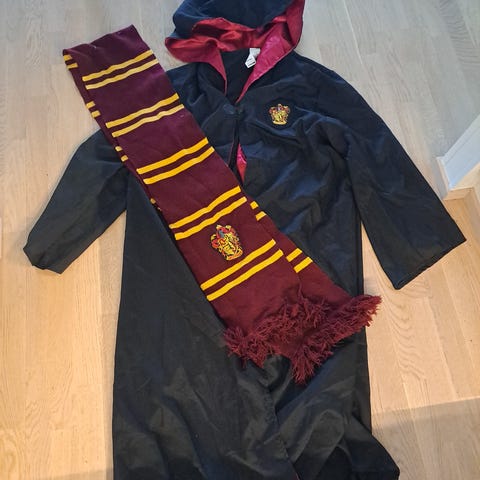 Harry Potter velhopukuun kuuluva viitta ja taikasauva unisex-käyttöön. Viitassa on huppu, edessä painettu harmaa ja viininpunainen liivi- ja solmiokuvio sekä rinnassa kultainen Tylypahkan vaakuna. Puku on pääosin musta, sisäpuolella hupussa viininpunainen vuori.
