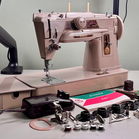 Suosittelen puhdistamaan vanhat, mahdollisesti jähmettyneet rasvat pois ja lisäämään tuoretta ompelukoneöljyä ohjekirjan osoittamiin paikkoihin. Sitten vain kovaa ajoa – tämä kone kestää todennäköisesti vielä seuraavatkin 60 vuotta!