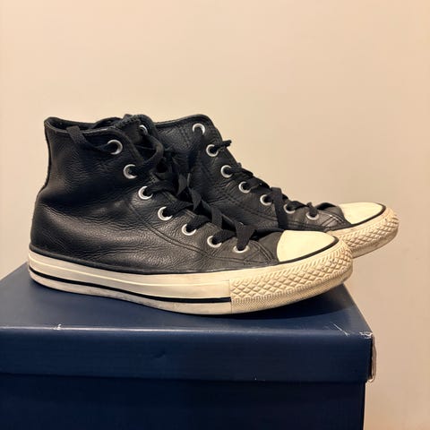 Myydään hyväkuntoiset valkoiset nahkaiset Conversen tennarit koossa 39.