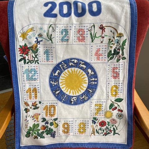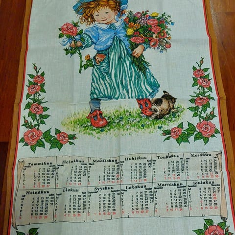 Siistikuntoinen ja tahraton kalenteripyyhe vuodelta 1972